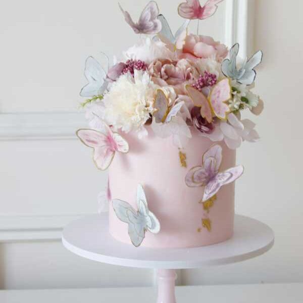 Pink Butterflies Flowers Cake